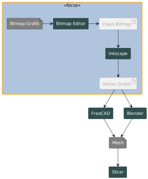 Um ein Bitmap (z.B. jpg,png) druckbar zu machen muss daraus erst einmal eine Vektorgrafik erstellt werden um in weiteren Schritten 3D-Objekte daraus zu erstellen.